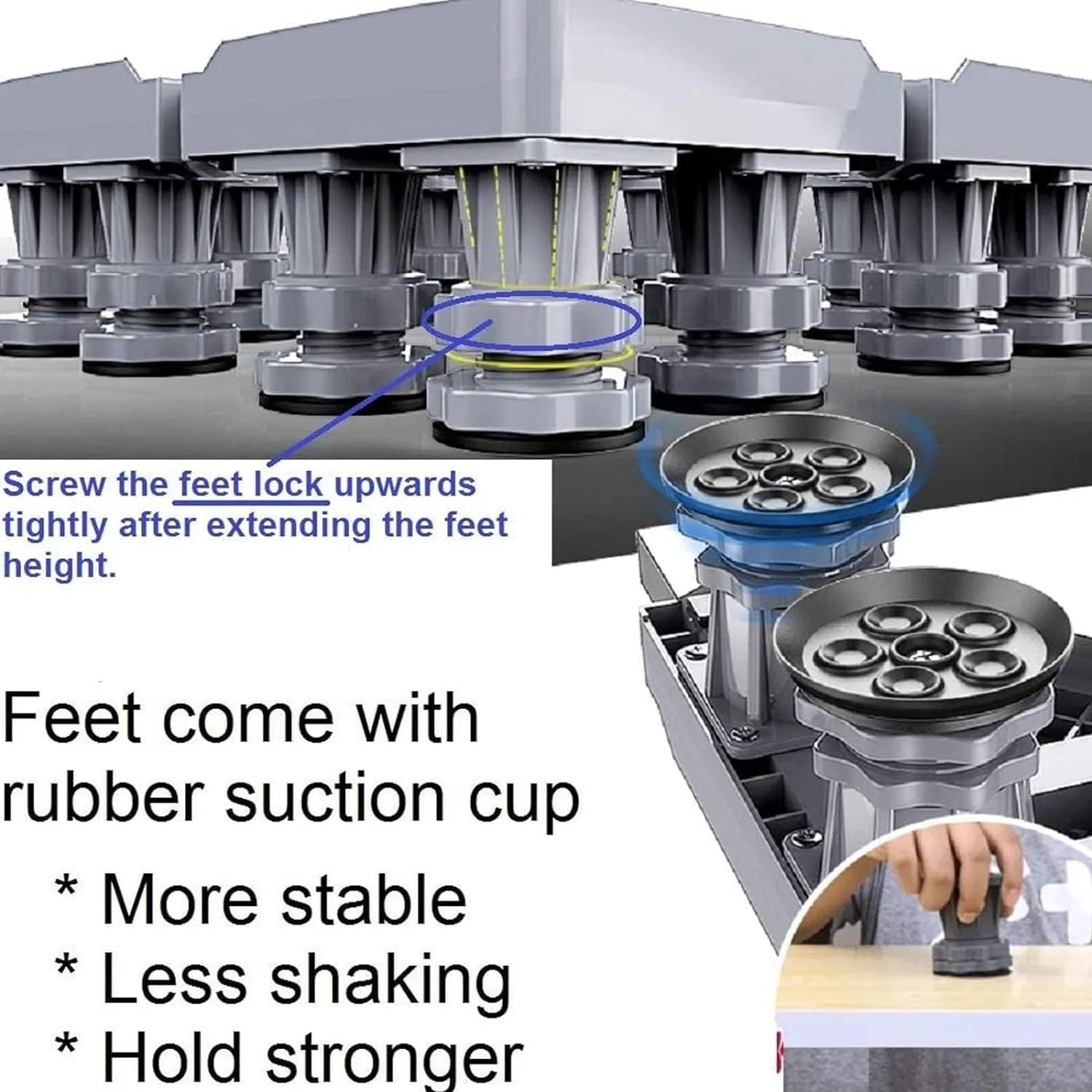 - ?Reduce Noise and Vibration?This washing machine stand has 8 feet with silent anti-slip and anti-vibration rubber pads, it can effectively reduce sliding motion, stabilize the washing machine, reduce noise and protect your equipment.